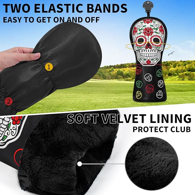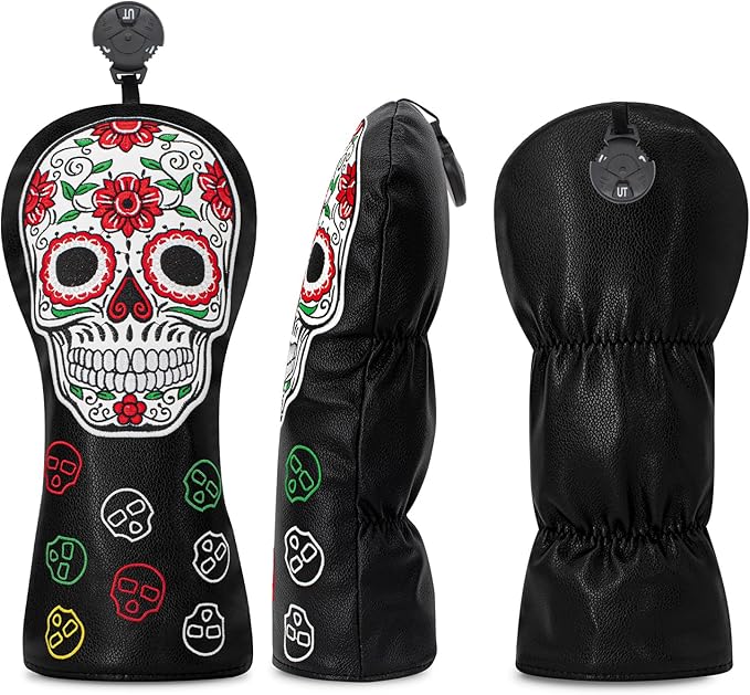 ゴルフヘッドカバー ゴルフクラブ レッドフラワー スカルデザイン ゴルフカバー PUヘッドカバーセット ドライバーフェアウェイウッドハイブリッドユーティリティウッズアイアンウェッジヘッドカバーにフィット。