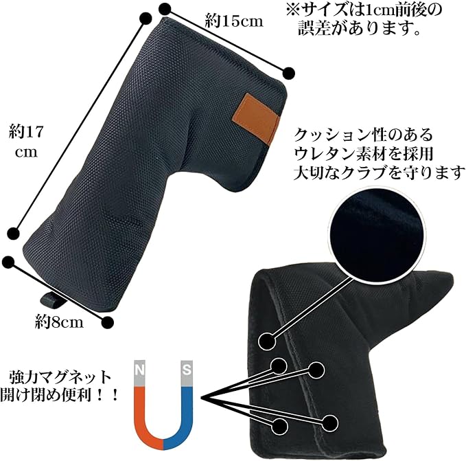 ゴルフ ヘッドカバー ピンタイプ パター カバー 防水仕様 1680Dナイロン 素材 使用 無地ナイロン