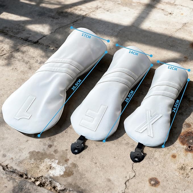 ■ サイズ(約) ドライバー用:35.5 17 4cm フェアウェイウッド用:29.5 14 4cm ユーティリティ用:24.5 12 4cm ※サイズは1cm前後の誤差がございます。 ■素材 表生地:防水PUレザー 裏生地:起毛生地 ■ カラー:ホワイト、ブラック ■ 特長 シンプルで上質:無地の純白・黒カラーを採用し、どんなゴルフバッグにもマッチ。飽きのこないデザインで長くご愛用いただけます。 防水仕様: 雨の日も安心。耐久性と防水性に優れた素材を使用し、クラブをしっかりガードします。 対応サイズ:ドライバー440cc・460cc対応 ユーティリティ、ウッドクラブにも対応 柔軟性のある構造で、クラブの出し入れもストレスフリー。プレーに集中できます。
