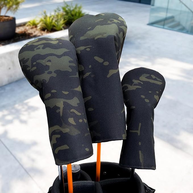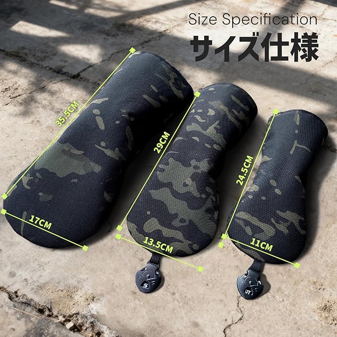 ゴルフ ヘッドカバー ドライバー ヘッドカバー ウッド カバー ユーティリティ ゴルフ UT カバー 番手タグ付き 防水仕様 ドライバー440cc 460cc 用 ナイロン迷彩黒