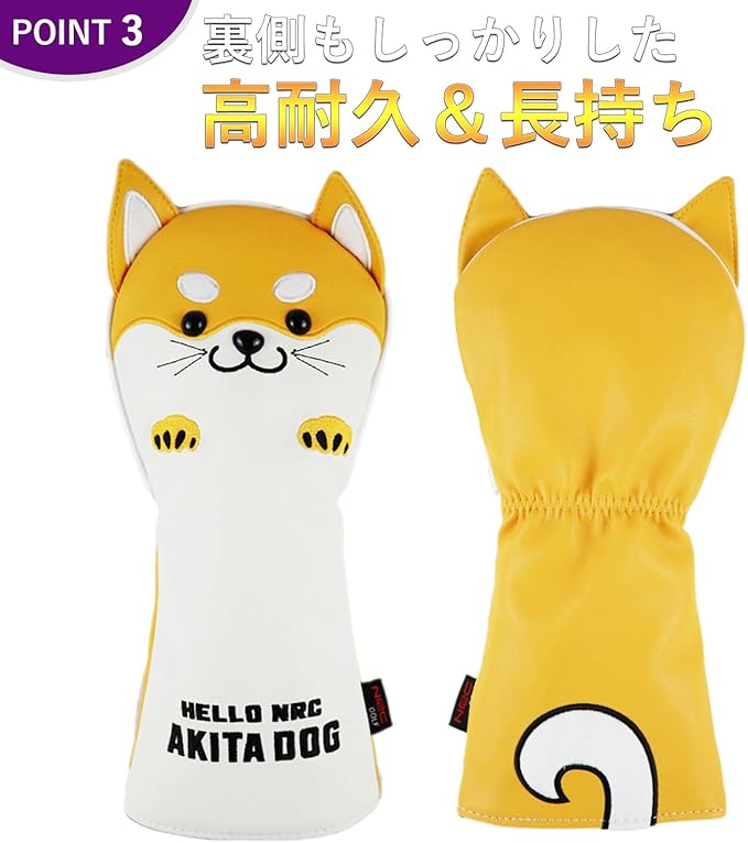 ゴルフ ヘッドカバー 440cc 460cc用 ウッド ユーティリティ UT用 防水仕様 秋田犬 サモエド