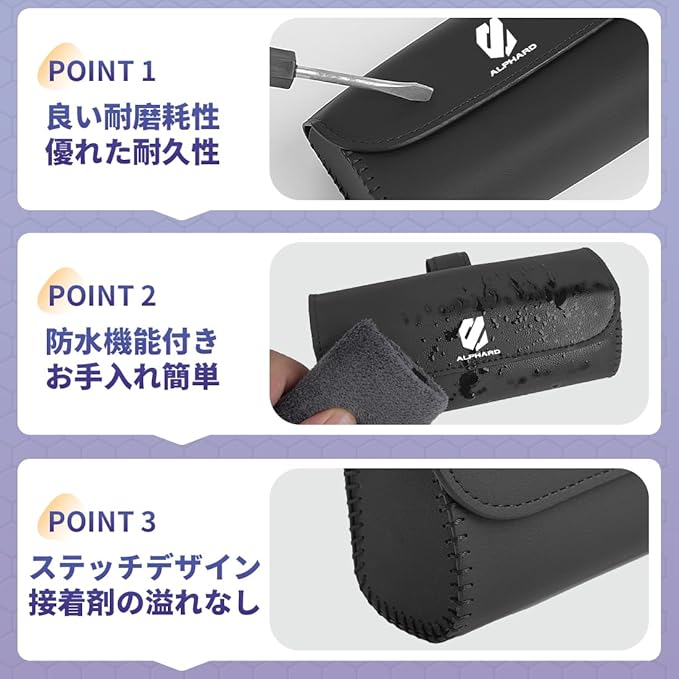 【専用ロゴ付き 高級感溢れ】この車用サングラスケースは高品質なPUレザーを使用しており、深みのあるブラックカラーはインテリアの色合いやデザインと自然に調和し、違和感なく愛車の内装に溶け込みます!専用ロゴが付いているため、サングラスケース全体のデザイン性が大幅に向上し、ファッション性のある外観を実現しています。さらに、独特なステッチデザインが、車用眼鏡ケース全体に優れた質感をもたらしています。適用車種:アルファード 20系 30系 40系