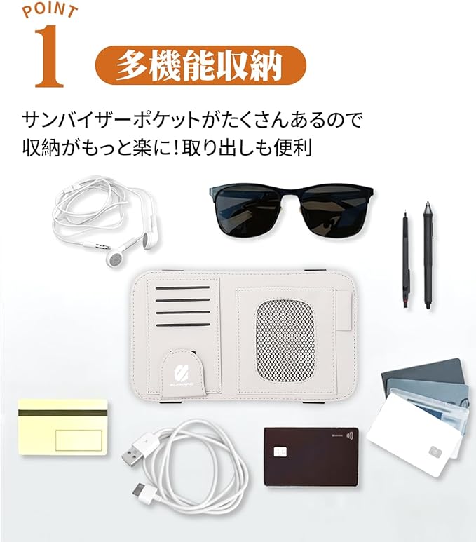 【多機能&スキッと収納】商品サイズ:25.5 15.5 0.3cm。 サンバイザーポケットは通常カードポケットに加えだけなく、メッシュポケットやメガネクリップなどもセットで、収納力アップ。複数カードポケットは散らかるカード類をスキッと収納、見えるメッシュポケットで、駐車券やガソリン会員券重要な券一目に確認、また、メガネクリップはマジックテープ採用して、使用やすいです。