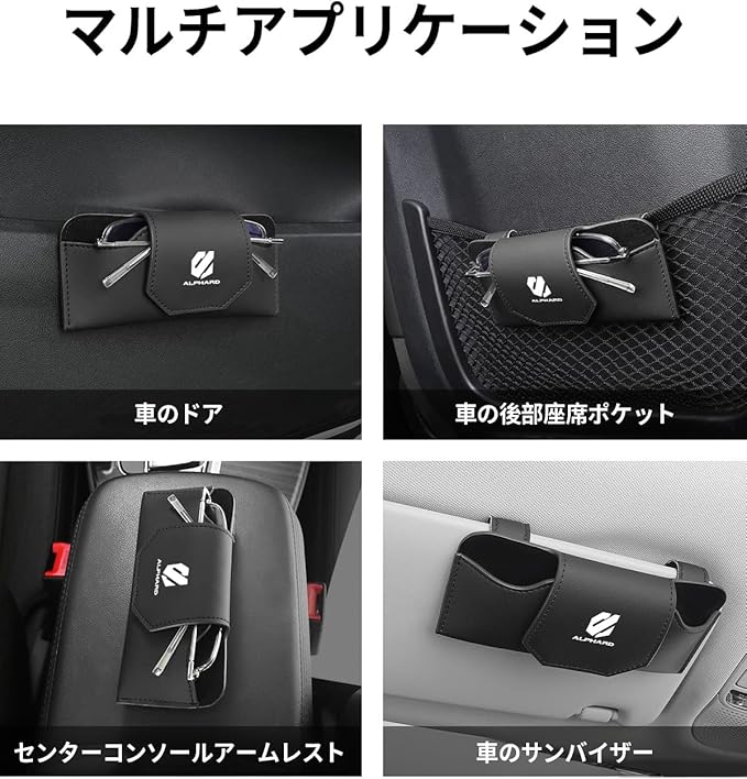 アルファード 専用 サングラスホルダー ALPHARD 専用ロゴ メガネホルダー アルファード 20系 30系 40系 適用 車用 メガネケース 取り付け簡単 眼鏡を保護 サンバイザー レザー製 車 収納 車内 カー用品 アクセサリー 1個(アルファード 専用)