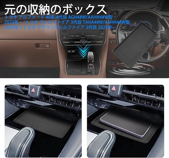 SHAOHAO 新型 トヨタ アルファード40系 4代目/ヴェルファイア 40系 3代目 専用 ワイヤレス充電トレイマット コンソールトレイ ラバーマット シリコーン材質 滑り止め アルファード40アクセサリー ヴェルファイア40パーツ 車用品