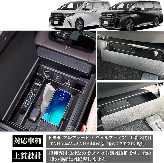 適応車種:トヨタ アルファード ヴェルファイア 40系 3代目 TAHA4#W/AAHH4#W型 対応年式:2023年-現行;車種専用設計なのでフィット感は抜群です、元の車の機能には影響しません。