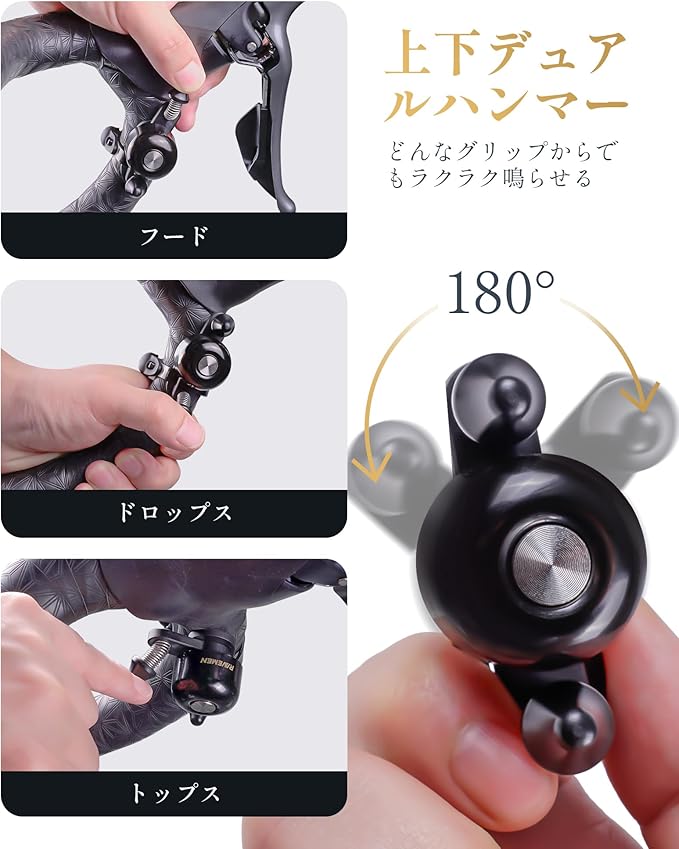 RAVEMEN Q3 自転車 ベル ロードバイク専用デザイン 多様な握り姿勢に対応 軽量 コンパクト 防錆 銅製 工具不要 簡単取付