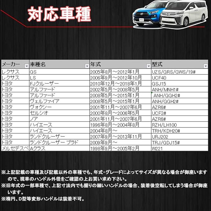 【対応車種】レクサス GS LS FJクルーザー アルファード/ヴェルファイア 20系 ヴォクシー 60系 ハイエース ベンツAクラス ふそう/UD 2t 小型トラック