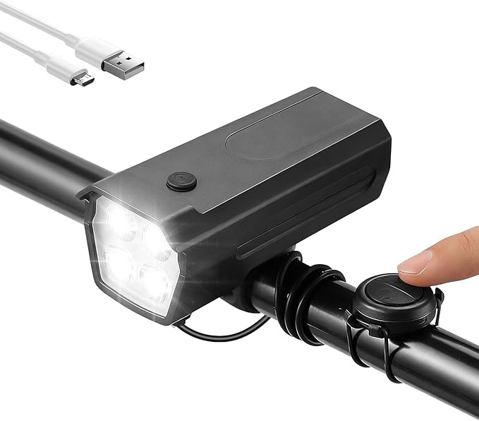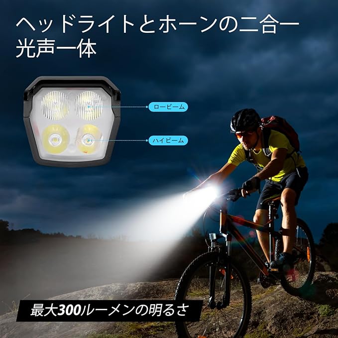 Merdia 自転車ライトとホーンの二合一 光声一体 ベル 120dB 自転車ホーン USB充電式 1200mAh 簡単取り付け 防水 懐中電灯兼用