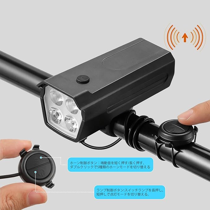 【自転車ライトとホーンの二合一】このランプにはホーンが内蔵されており、リモコンを外付けして制御することができ、光と音の一体を実現することができる。一体型ランプホーンは機能統合により、走行の安全性、利便性、実用性を向上させ、現代自転車部品の実用的な選択である。