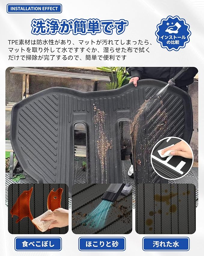 【高品質の環境保護素材】ヴェルファイア カーゴマット/アルファード カーゴマット は高品質のTPE素材を使用、耐衝撃性、耐磨耗性に優れ、表面劣化などが起こりにくく、長時間ご愛用いただけます。さらに、清掃簡単、水洗OK、折畳OK、繰り返して使えます。防水、防雑音、長寿命、無臭無毒、高低温に耐えられます。温度の高い夏場や寒い冬場でもご使用いただけます。