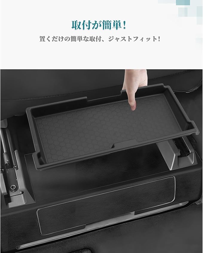 【手間なし・簡単取り付け】アルファード40専用のオリジナルデータを基に、最新の3Dスキャン技術を採用し、助手席シート下にぴったりと合うサイズに仕上げた収納ボックスです。テープ不要で、助手席シート下に合わせて置くだけで簡単に取り付け可能、車の内装を傷つけることなく安全にご使用いただけます