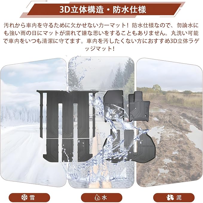 【適合車種】トヨタ アルファード/ ヴェルファイア40系AAHH40W/AAHH45W/AGH40W/AGH45W/TAHA40W/TAHA45W(ガソリン/ハイブリッド共通)専用で、年式:R5.6〜現行。 運転席用1件、助手席用1件、2列目用1件、3列目用:3件、ラゲッジマット用1件が含まれています。合計7枚セット。購入する前、形状、年式とモデルを確認してください。