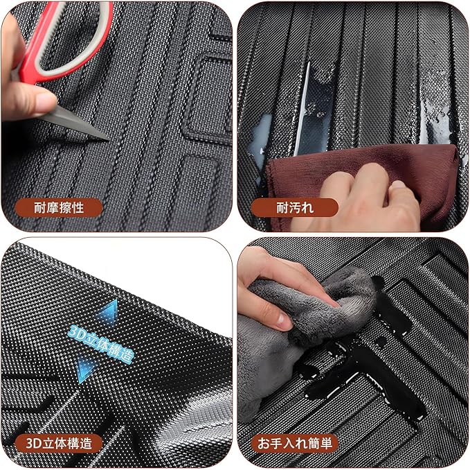 【高機能防汚・耐水仕様】この製品は、表面には独自の滑り止めテクスチャーがあるため、足元がしっかり安定し、運転の安全性も高まります。加えて TPE 素材は防水性に優れ、雨水や泥などの液体がしみ込むのをしっかり防いで、車内をいつも清潔に保ってくれます。