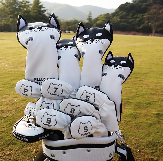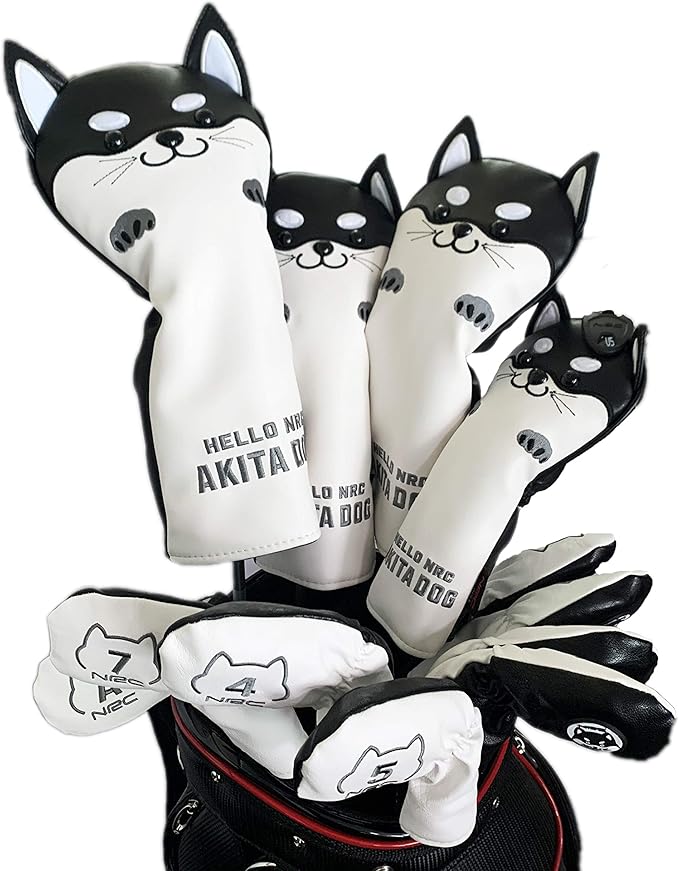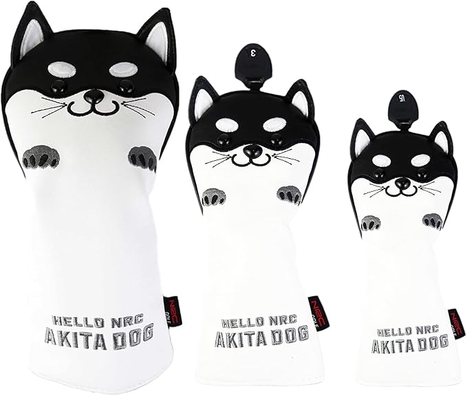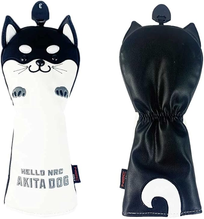 HELLO NRC ゴルフ ヘッドカバー 秋田犬/チルト ネコ デザイン かわいい 黄 フェアウェイウッド ユーティリティ カバー 防水 防錆 PU レザー ドライバー 440cc 460cc (DR/FW/UT) 調節可能 変換タグ付き 多機能 軽量 すべてのゴルフクラブ対応