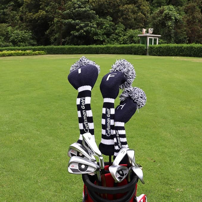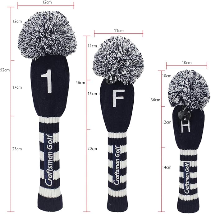 Craftsman(クラフトマン) ゴルフヘッドカバー 3点セット(1FH) クラブカバー ドライバー用・フェアウェイウッド用・ハイブリッド用 ニット ナンバータグ付け