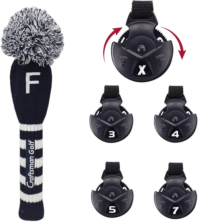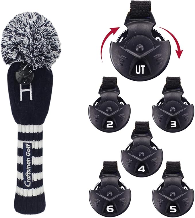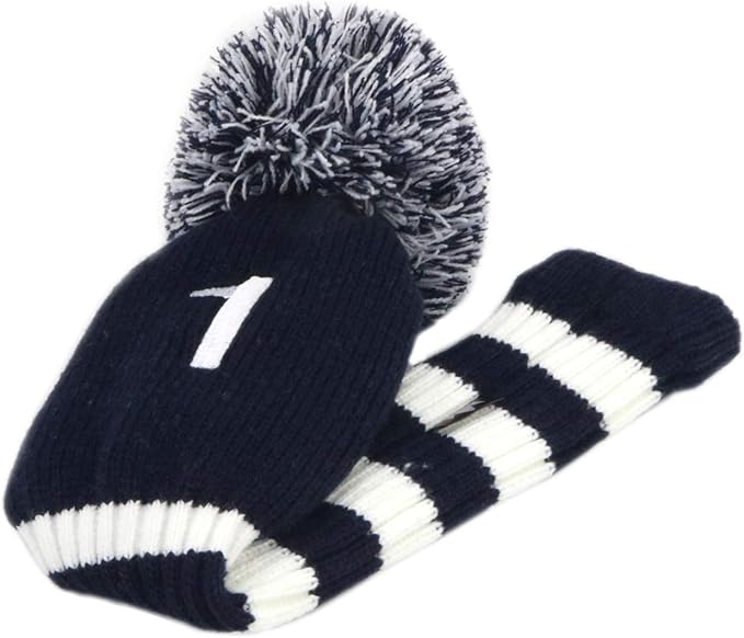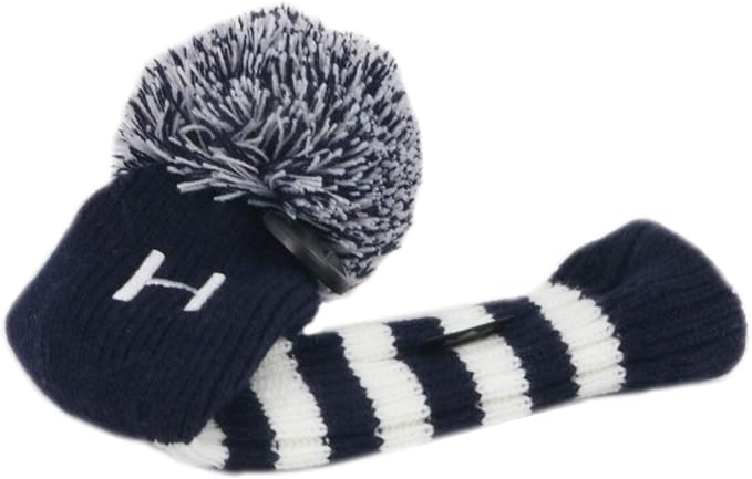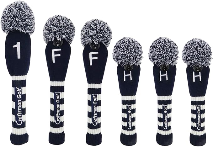 Craftsman(クラフトマン) ゴルフクラブヘッドカバー 単品/セット ドライバーカバー#1 フェアウェイウッドカバー#F(3、4、5、7、X) ユティリティーカバー #H(2、3、4、5、6、UT) ニット ポンポン 紺・白