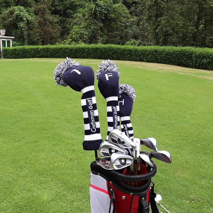 Craftsman(クラフトマン) ゴルフクラブヘッドカバー 単品/セット ドライバーカバー#1 フェアウェイウッドカバー#F(3、4、5、7、X) ユティリティーカバー #H(2、3、4、5、6、UT) ニット ポンポン 紺・白