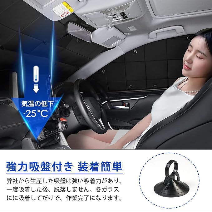 ✔5.【装着簡単・収納便利】吸盤タイプ設計を採用して、即座に取り付け取り外しが可能です。格子状設計ので、商品外観も美しく、シェーディング効果も一流です。車に積みっぱなしでもOK!簡単にコンパクトに収納可能です。(※①取り付ける時、まず窓を清潔にして、それから吸盤を貼り付けます。吸盤を押すことによって、吸盤内部のすべての空気を取り除き、吸盤をより強固に貼り付けます。※②吸盤が変形した後、また吸引しなかった後、60秒間にお湯に浸して仕様を再開してください。)