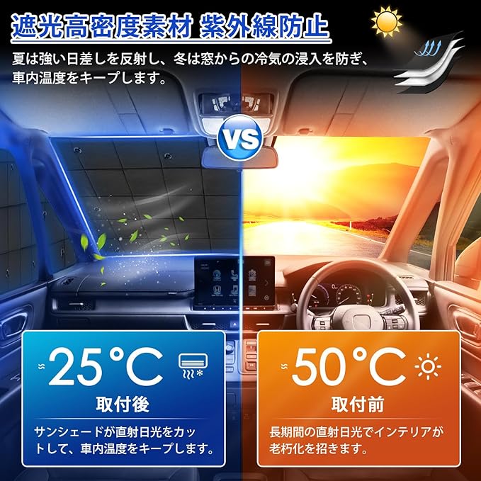 ✔4.【高品質素材・紫外線防止・トップレベルの保温性能】本製品の表面が特殊生地を採用して、夏は強い日差しを反射し、車内温度の上昇を抑えるとともに、紫外線や日差しから車内を守ります。冬は窓からの冷気の浸入を防ぎ、車内温度をキープして、車中泊も快適です。エアコンの効率も良くなるのでエコ対策にもオススメです。【軽量・クッション機能】芯材に軽量クッション素材を使用。ガラスの傷防止にも役立ちます。厚みのある素材ので、軽いくて落としにくいです。