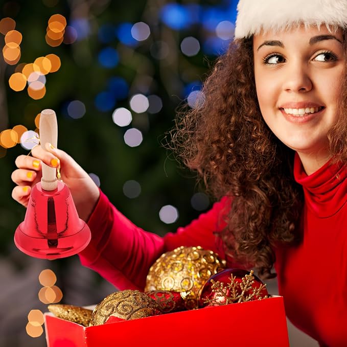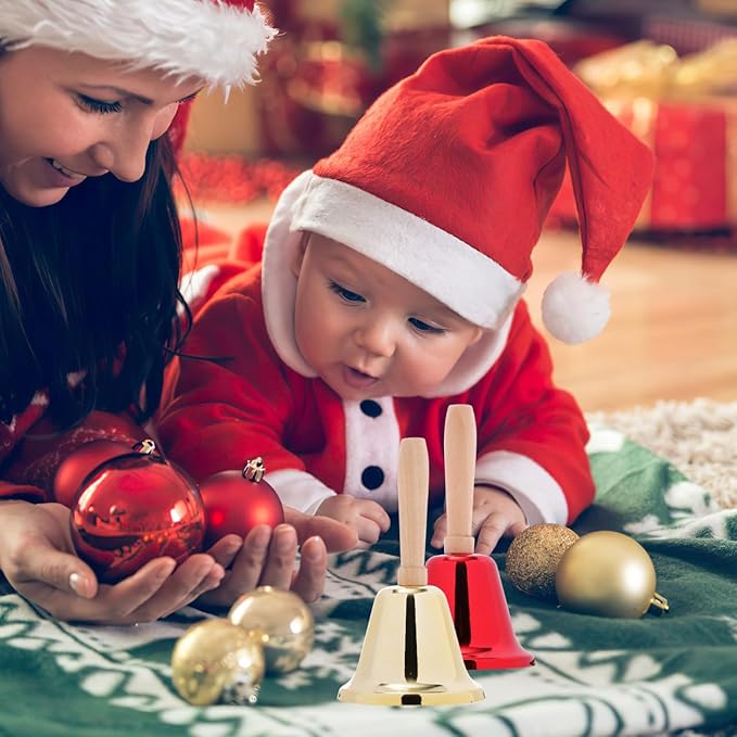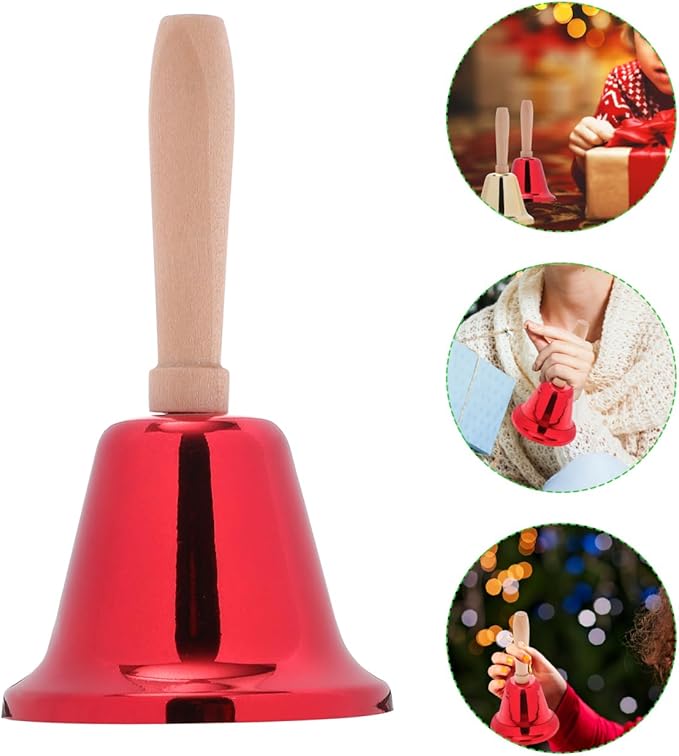 Alasum ハンドベル 2個セット 呼び鈴 クリスマス 抽選会 福引き イベント 盛り上げ 手振りベル 楽器 ベル 飲食店 受付 店舗 呼び出し パーティー 余興 木製ハンドル ゴールド レッド