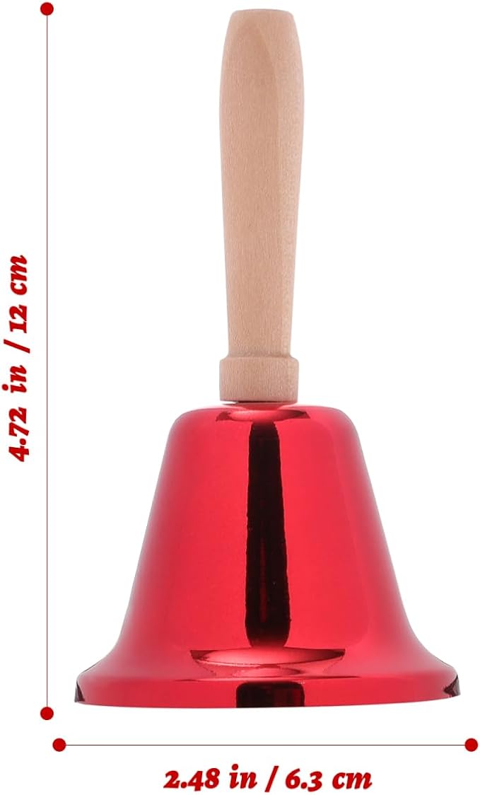 【製品仕様】セット内容:ハンドベル 2個(ゴールド1個+レッド1個)。サイズ:約12 6.3cm。材質:鉄、木。軽量で持ち運びやすく、卓上 に置いてもおしゃれな 北欧 風デザインです。