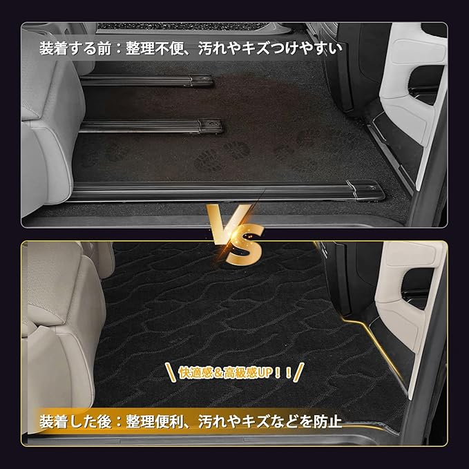 4.「レールが隠れる・汚れ防止」2列目のレールを隠すことができます。レールが隠れると、車内雰囲気が変わります。レールがカバーできうるので、車の床を汚れやギスなどから守ります。子供の食べカス・靴の泥・ほこりなどに困っているお客様におススメ!