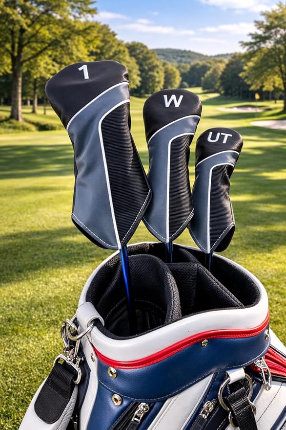 【商品特徴】 ✅ ドライバー用1、フェアウェイウッド用W、ユーティリティ用H ✅ 高品質PUレザー採用:防水性・耐久性に優れ、汚れにも強い ✅ 内側は柔らか素材:クラブヘッドをキズからしっかり守ります ✅ 番号付きタグ:クラブを一目で識別 ✅ スタイリッシュデザイン:黒を基調にイエローラインがアクセント ✅ 伸縮バンド付きで脱落を防止し、出し入れもスムーズ