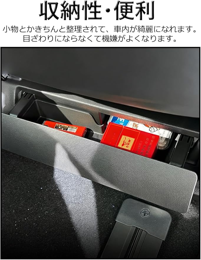 【収納性・便利】この ヴェルファイア 40系 シート下収納ボックス は スペースを有効活用して、様々な小物を綺麗に収納できます。また、ストライプのデザインにより摩擦が増加し、運転中の物の滑りを効果的に防ぎ、騒音を軽減します。運転席周りのスペースにきれいになります、気分良くドライブを楽しめます。