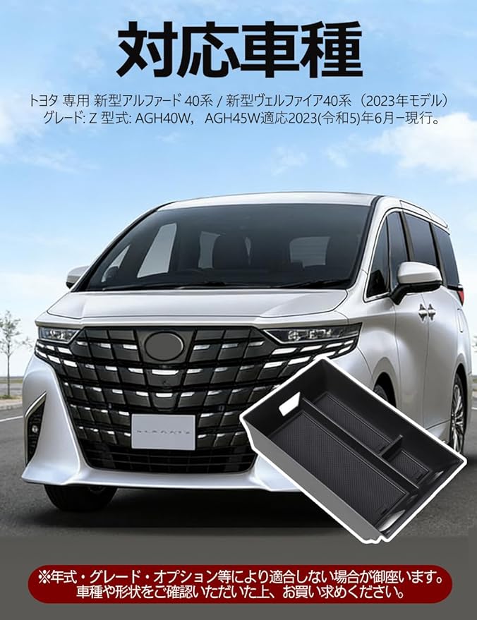 【対応車種】 トヨタ 専用 新型アルファード 40系 / 新型ヴェルファイア40系(2023年モデル)グレード: Z 型式: AGH40W,AGH45W適応2023(令和5)年6月ー現行。※年式・グレード・オプション等により適合しない場合が御座います。車種や形状をご確認いただいた上、お買い求めください。