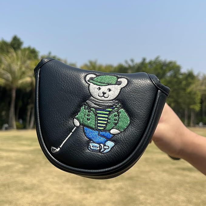 ゴルフパターカバー パターヘッドカバー ブレードパターカバー ゴルフクラブヘッドカバー ゴルフヘッドカバー PUレザー製 おしゃれ クマ刺繍 ブラック ゴルフパターヘッドカバー マグネット付き、全ブランドに適合