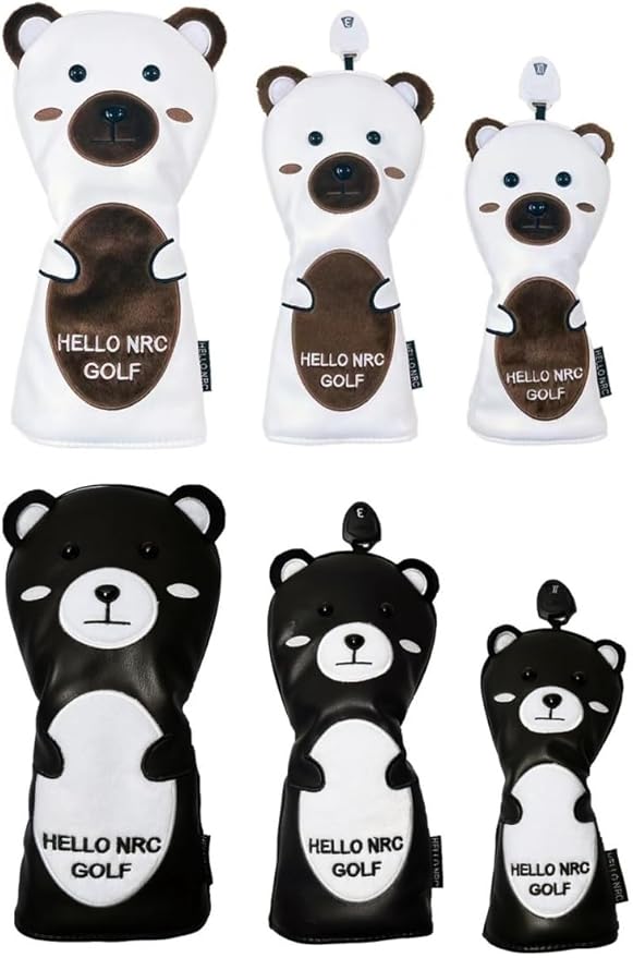 可愛い黒熊、白熊デザイン、高品質のPUレザーで、しっかりクラブヘッドを保護でき、防水タイプ