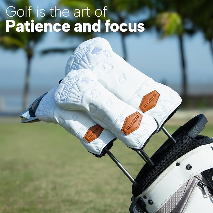 ゴルフクラブヘッドカバー ポーカーデザイン ゴルフヘッドカバー 高級レザー製 ドライバー フェアウェイウッド ユーティリティ ハイブリッド 番号タグ付き