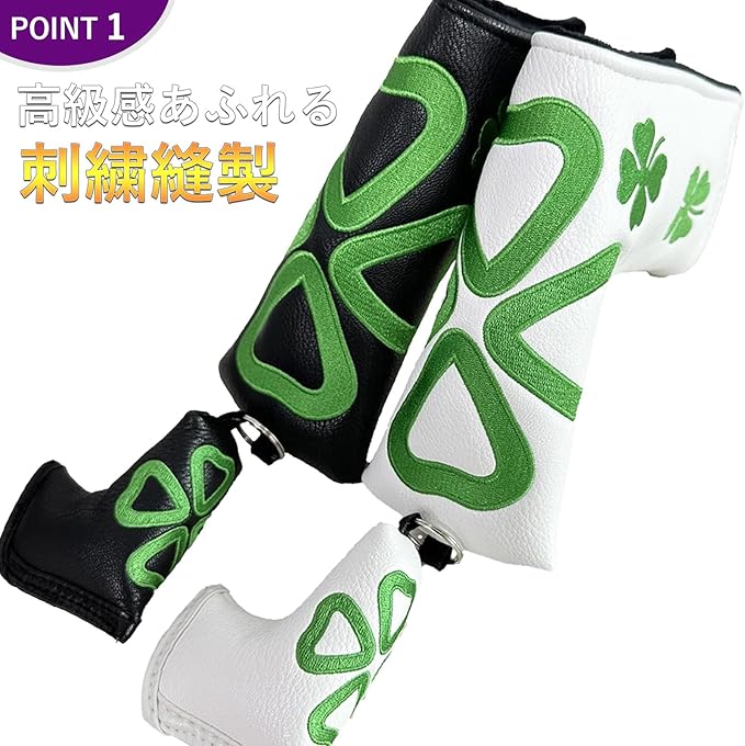 ※人気シリーズ、際立つクローバーデザインのピンタイプ パターカバー パターカバー ピンタイプ クローバー キーリング付き 刺繍 パターカバー スコッティーキャメロン オデッセイに 適合 マグネット開閉