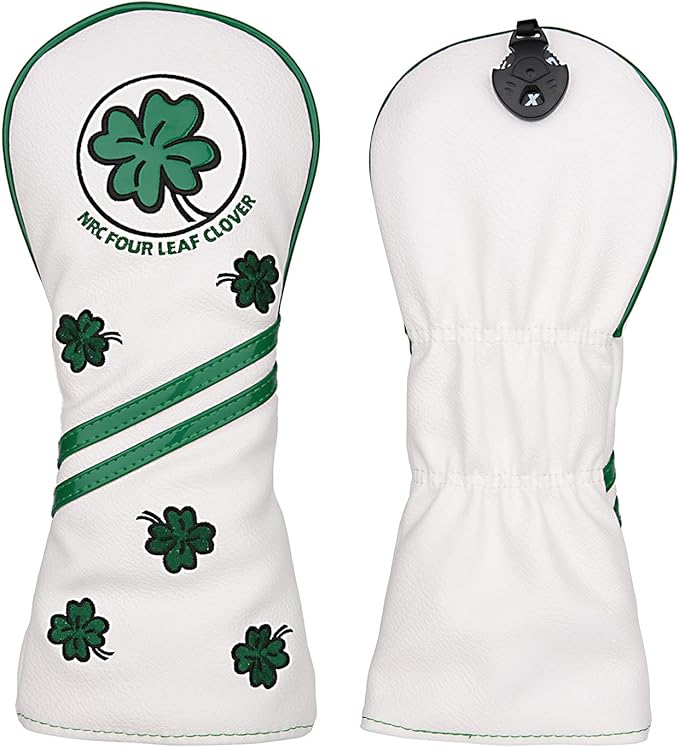 ゴルフヘッドカバー 四葉のクローバー ゴルフグラブ3点セット/ ドライバーDR用カバー/ウッド用 FW/ユーティリティ用 UT 白 単品1個販売/3点セット ホワイト
