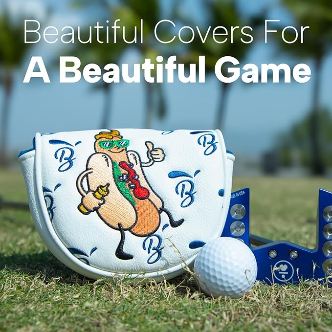 ゴルフパターカバー OZ1 プレミアム刺繍 ホットドッグ マレットパターヘッドカバー レザーゴルフクラブカバー マグネット開閉式 OZ1、MEZZ1、MEZZ1 MAXに適合