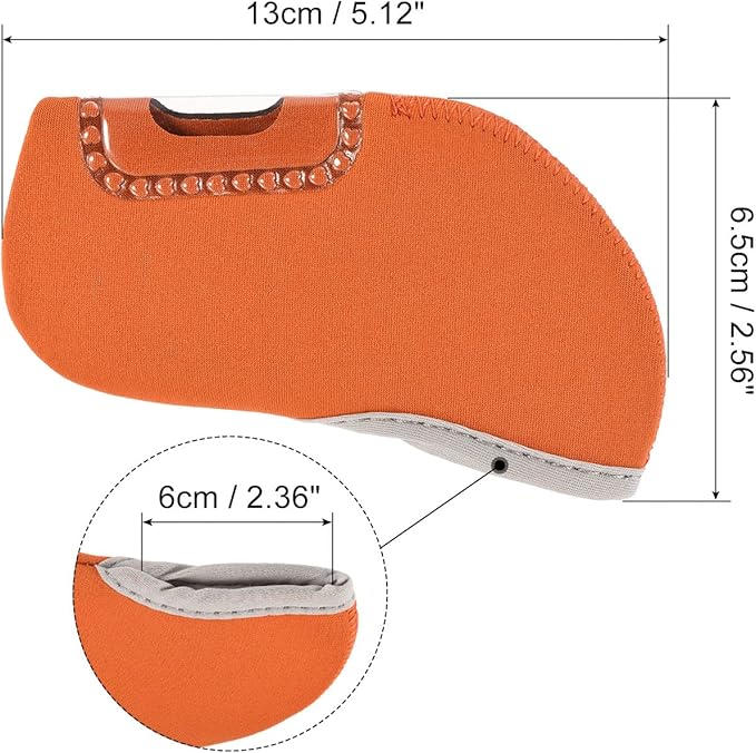 カラー:オレンジ; 合計サイズ:13 x 6.5 cm(L x W); 開口部の長さ:6cm; パッキングリスト:10個 x ゴルフクラブアイアンヘッドカバー