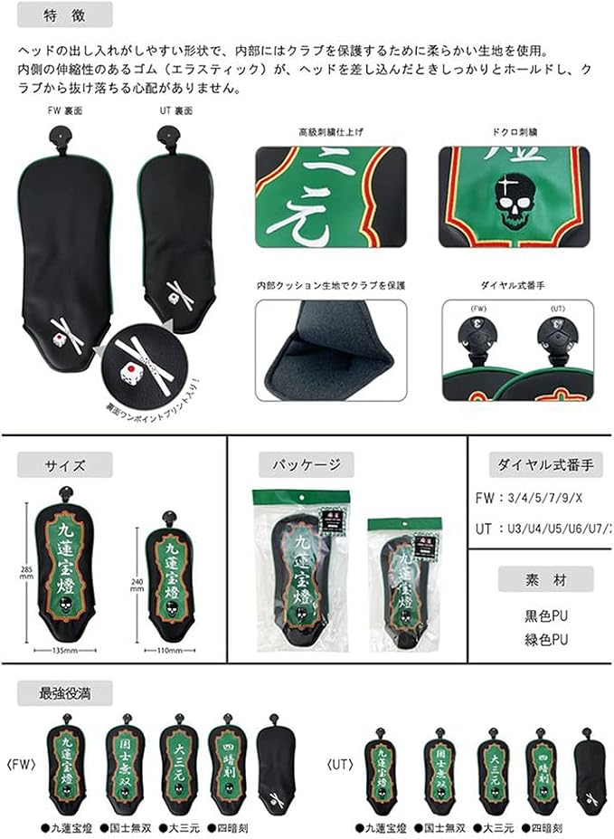 リンクス(LYNX) 麻雀ヘッドカバー FW用 フェアウェイウッド用 九連宝燈