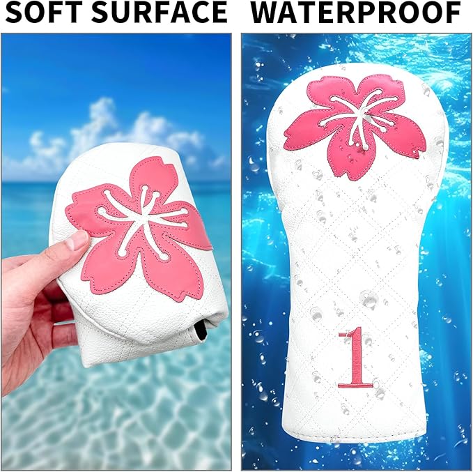 ゴルフヘッドカバー ゴルフクラブグリッド 桜デザイン ゴルフカバー PUヘッドカバーセット ドライバーフェアウェイウッドハイブリッドユーティリティウッズアイアンウェッジヘッドカバーにフィット。