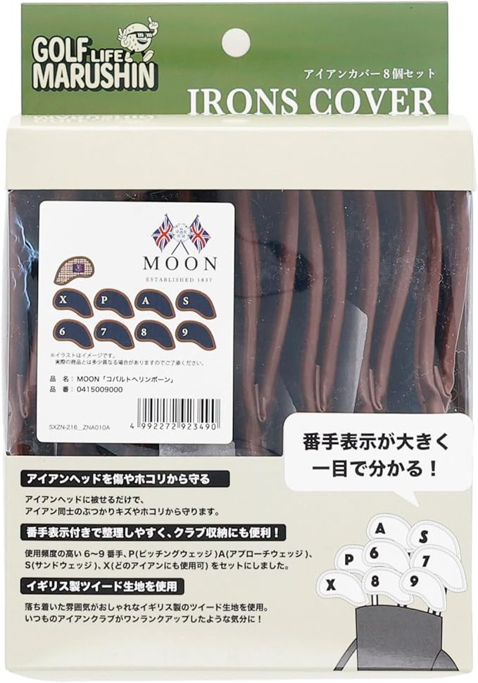 丸眞 アイアンカバー8個セット イギリス MOON コバルトヘリンボーン 初心者 0415009000