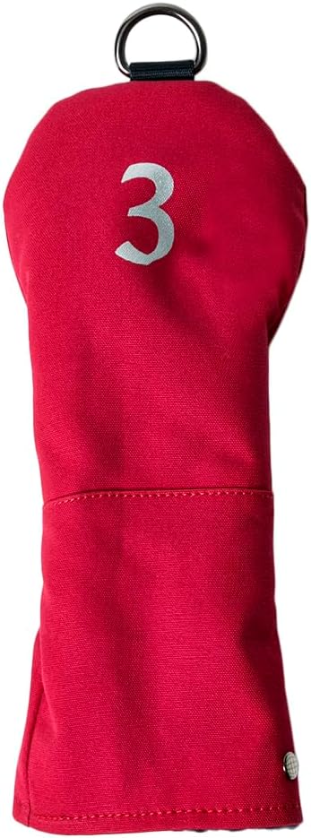 コットンキャンバスの生地を使ったフェアウェイウッド用ヘッドカバー。色はレッド。