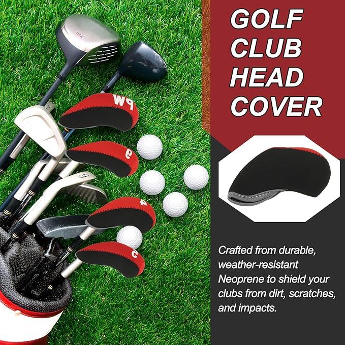 PATIKIL ゴルフクラブヘッドカバー 10個セット ナンバー入りアイアンカバー ネオプレンドライバーカバー ゴルフ愛好者への贈り物 オレンジ/レッド