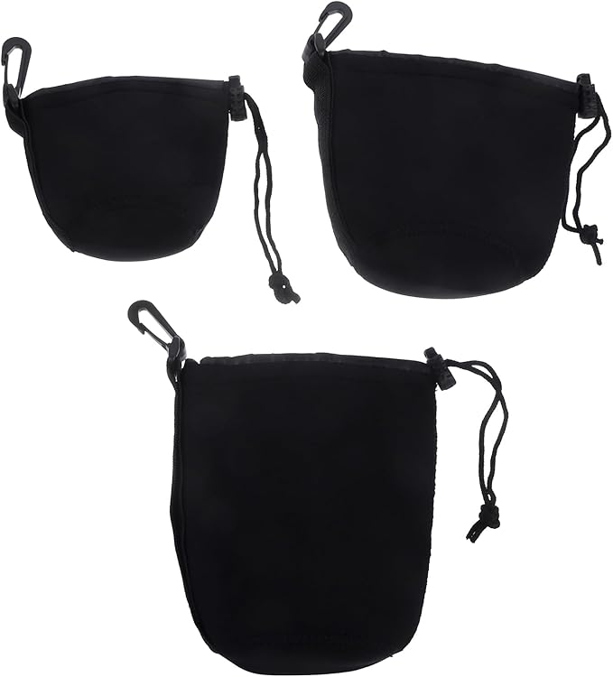 Homoyoyo カメラポーチ ソフトクッション レンズバッグ 巾着 デジタルカメラケース ミニ 小型 レンズポーチ パッド入り マルチ レンズ収納 旅行 レンズプロテクター 3個セット ブラック