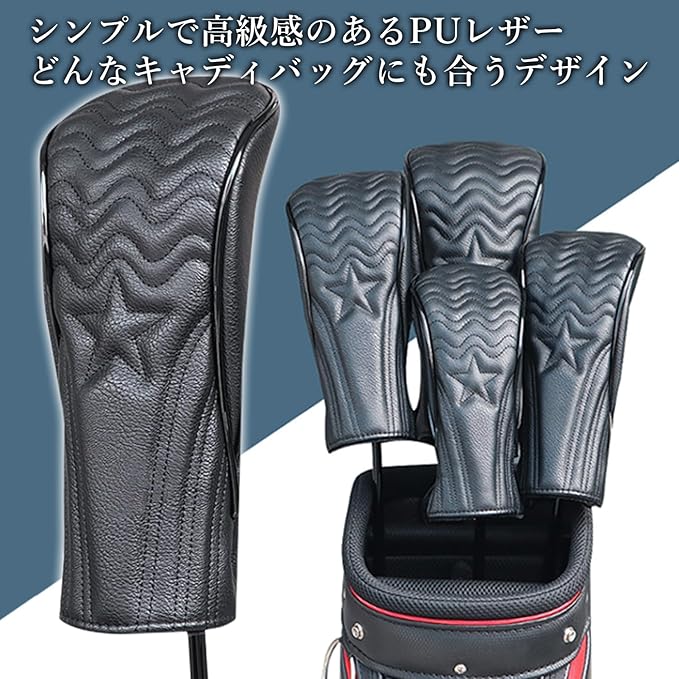 ゴルフ ヘッドカバー 3点セット ドライバー フェアウェイウッド ユーティリティ PUレザー ブラック おしゃれ 防水 保護