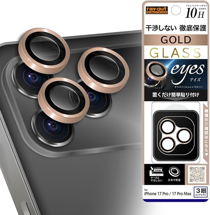 レイ・アウト カメラフィルム for iPhone 17 Pro / 17 Pro Max 兼用 カメラレンズ ガラス プロテクター カメラ保護 簡単 かんたん 失敗しない きれいに貼れる 軽量 レンズ 保護 保護フィルム 防埃 ゴールド ゴールド