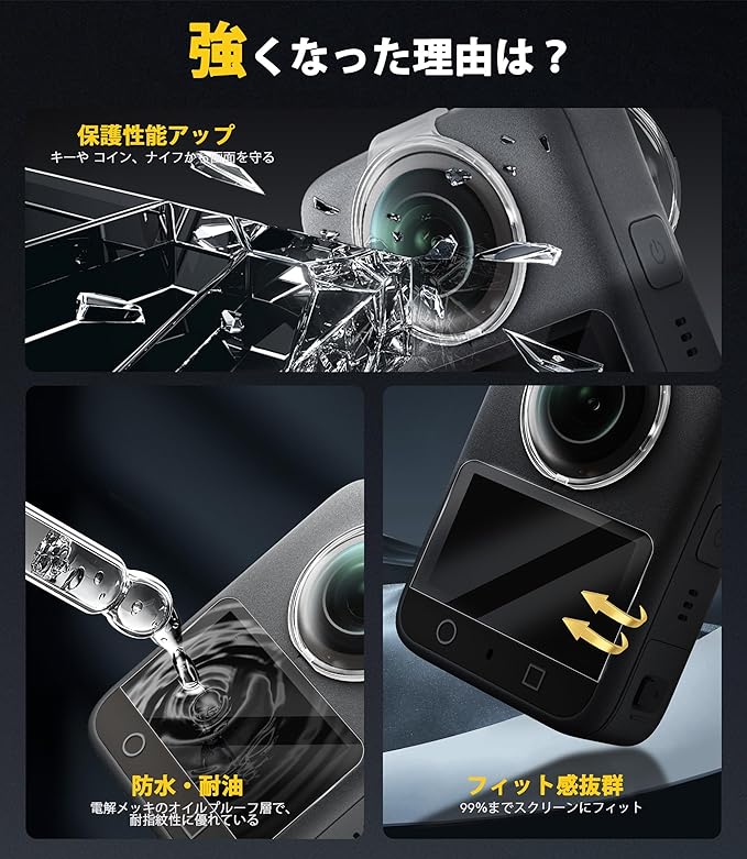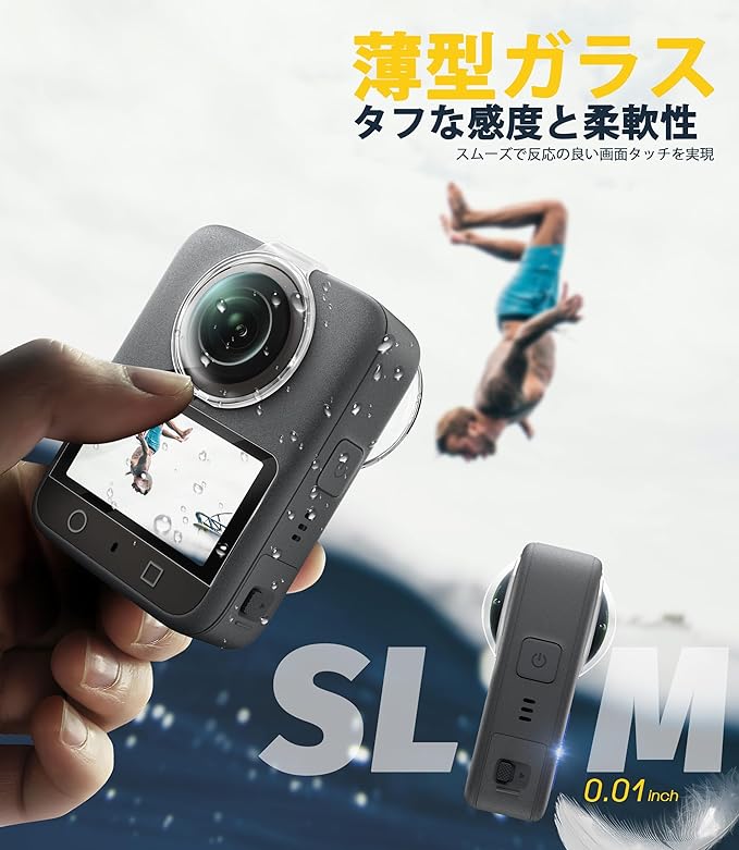 【タッチ感】極薄デザイン、かつフィルム表面に高耐久撥油コーティングが施されたことで、指紋や汚れが付きにくくになります。画面上の操作も違和感なくスムーズに行えます。保護フィルム自体の存在感が低いので、DJI OSMO 360が快適で滑らかな操作できます。
