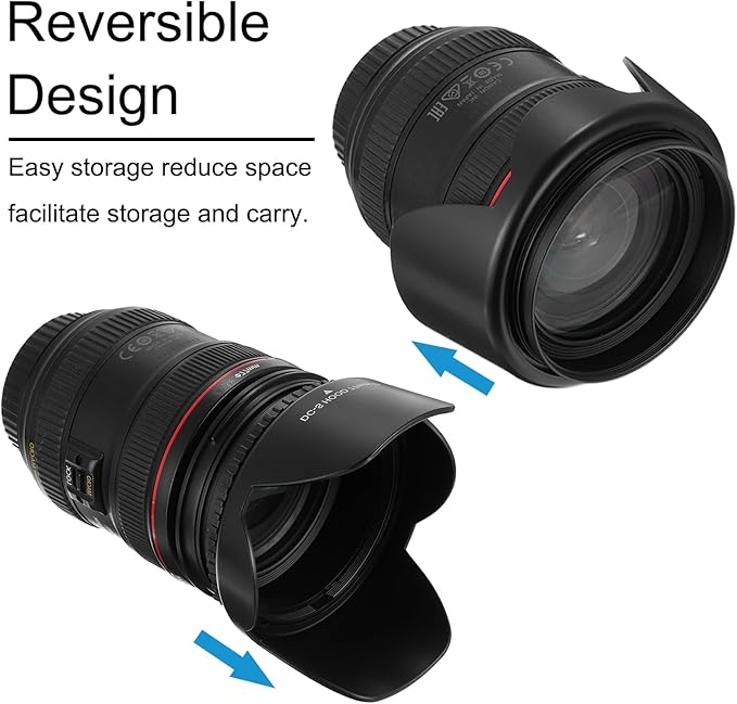 A BSプラスチック素材で作られ、軽量で持ち運びに便利で耐久性があります。表面はマッ ト仕上げで、スタイリッシュでモダンな外観を与えています。チューリップフラワーの形状設計により、より多様性があります。可逆的なデザインで簡単に収納でき、スペースを節約し、収納と持ち運びを容易にします。内部の反射防止設計により、特に低光環境での撮影時にレンズに光が入るのを防ぎます。また、レンズを偶然の損傷から保護し、指がレンズ表面に触れるのを防ぎます。