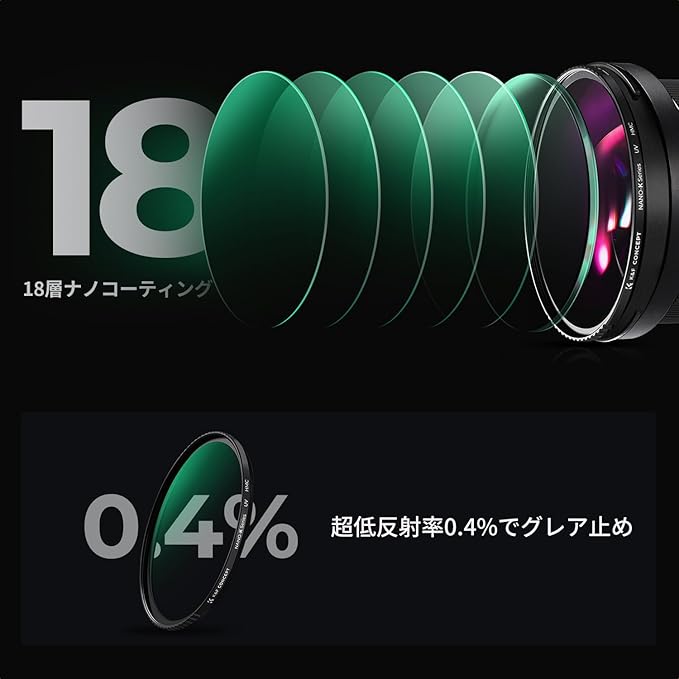 【レンズ保護&多層加工】レンズ保護のため、普段からレンズに取り付けることをおすすめ。18層コーティング加工で、撥水・撥油性があり、指紋がつきにくく、汚れも簡単に拭き取れる。