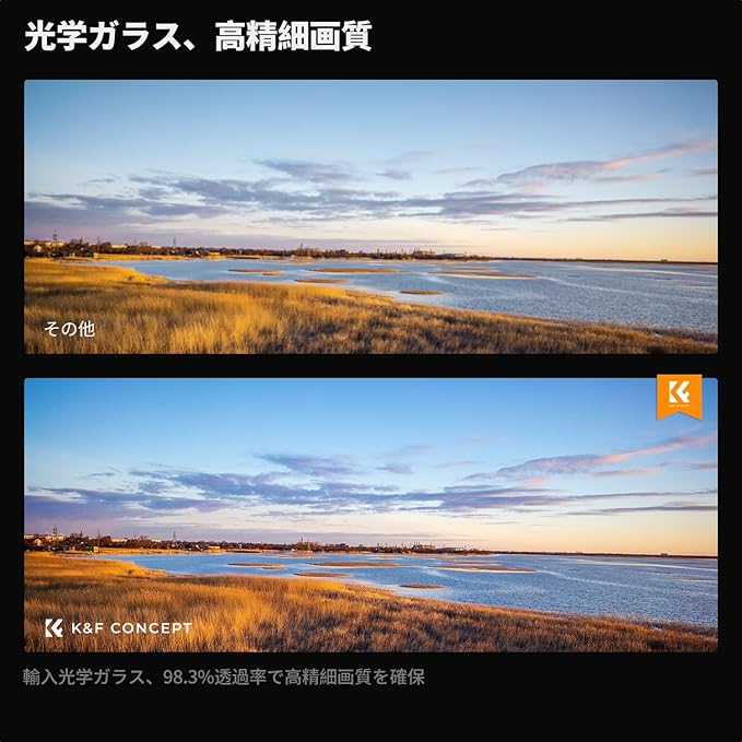【1枚入るクリーニングクロス】付属のクリーニングクロスはマイクロファイバーを採用し、優れた吸水性・通気性・清潔力があります。しつこい油膜や皮脂の汚れもスッキリ除去可能です。レンズ/フィルターなどの光学機器のコーティングに損傷を与えません。