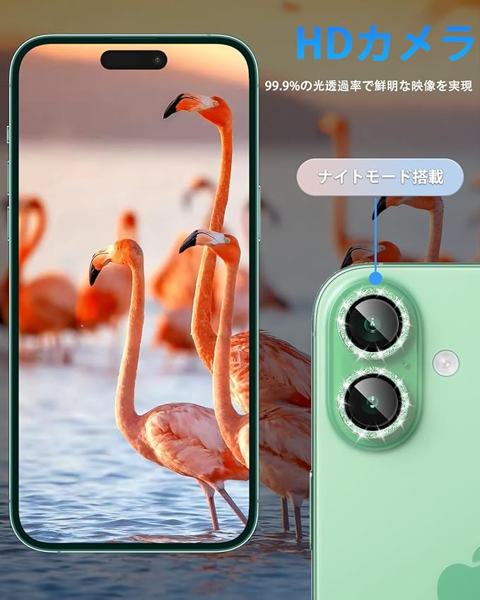 CloudValley 対応 iphone 17 レンズカバー セージ フラッシュ可愛い オリジナルモデルとの色の違いはありません カメラ保護 9H強化ガラス 全面保護 簡単にずれずに装着可能 1:1 インビジブルパーフェクトフィット 9H強化ガラス 高透過率 傷防止 (きらめき-グリーン)